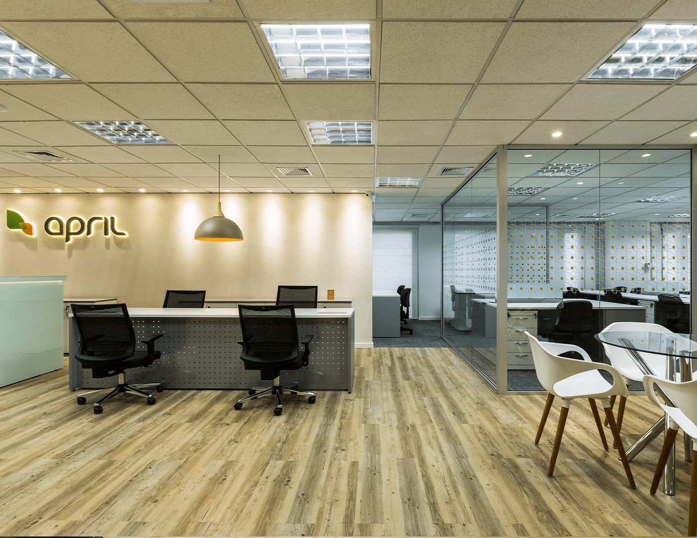 Melhorar o bem-estar e aumentar a produtividade, sem perder o conforto e a praticidade do ambiente. Com conceito open office, o espaço desta nova sede da seguradora April com 800 m² reúne cerca de 100 colaboradores que atuam na capital paulista. As mudanças favoreceram ainda mais a agilidade nas tomadas de decisões e mais ágil o desenvolvimento de novos produtos.