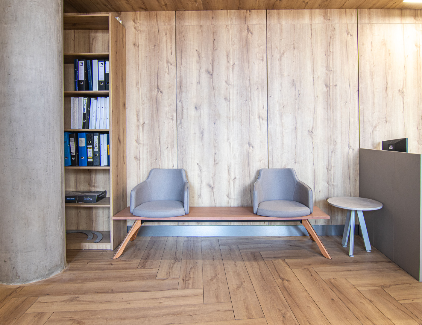 Foram escolhidos diferentes produtos para compor os espaços: Linhas Duo, Go, Flip para salas de reuniões, Linha Spin, Duo e Fun para áreas colaborativas e Linha Duo para área de recepção. A Poltrona Solo e o Ottoman, compõem a sala de diretoria como um convite à experiência de conforto e contemplação entre as atividades do dia.