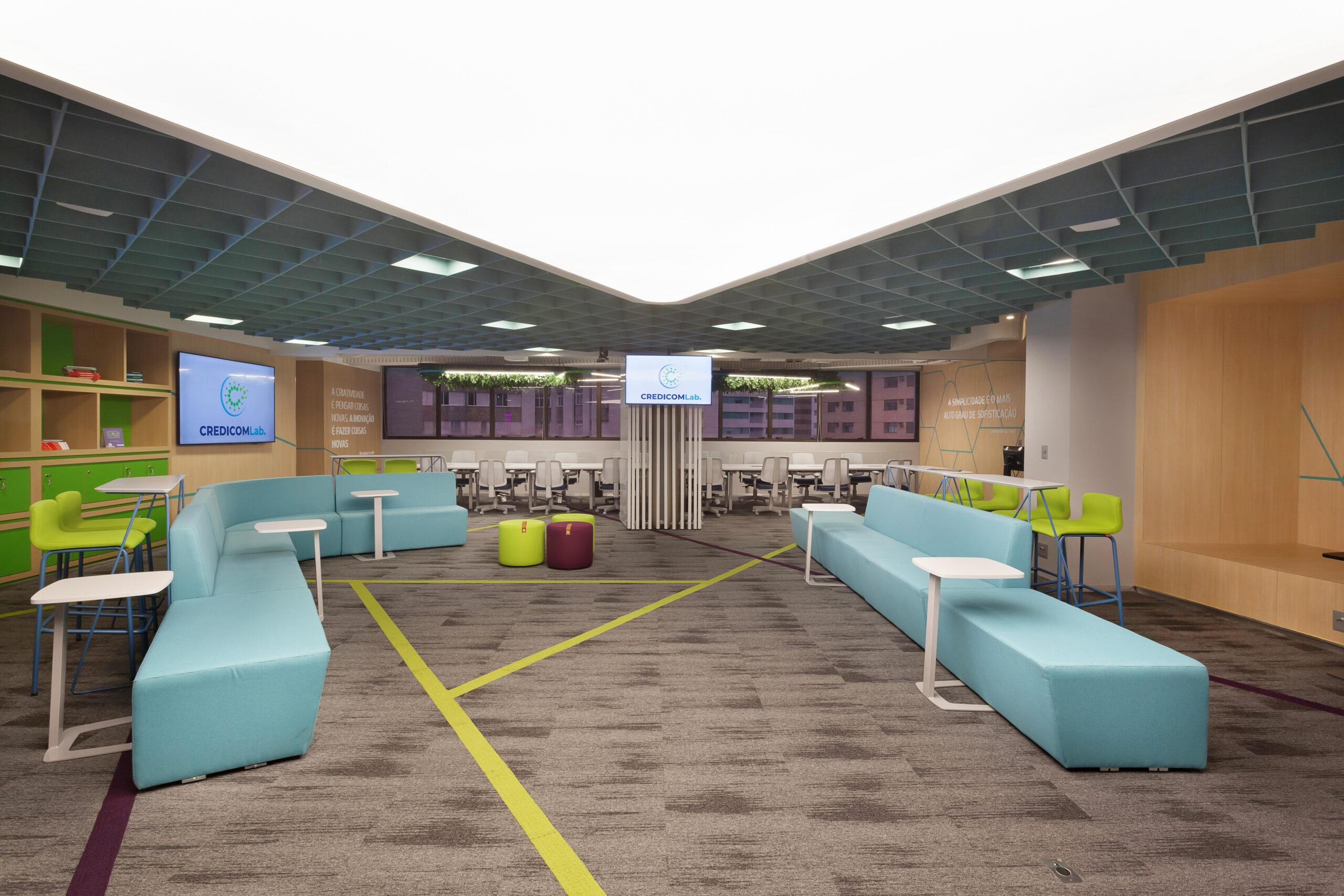 O Sicoob Credicom é uma cooperativa da área da saúde que, com intuito de inovar, criou um espaço novo, o CREDICOMLAB: um local para debate de ideias, voltado para fomentar a criatividade, a colaboração e a inovação dos colaboradores da cooperativa. A estrutura visa receber startups para facilitar a troca com outras cooperativas, buscando transformar o espaço de trabalho em algo flexível e colaborativo.