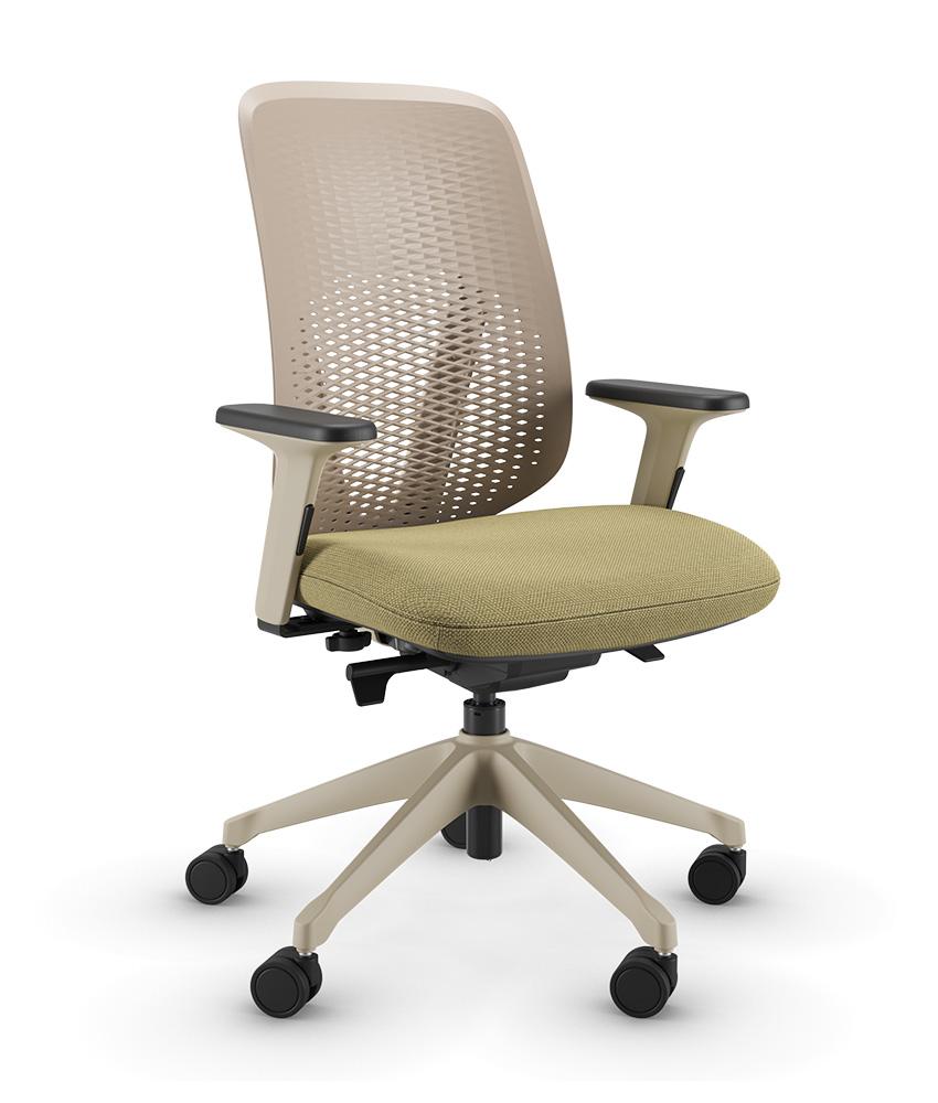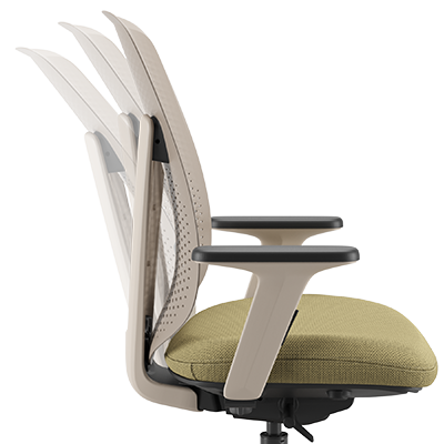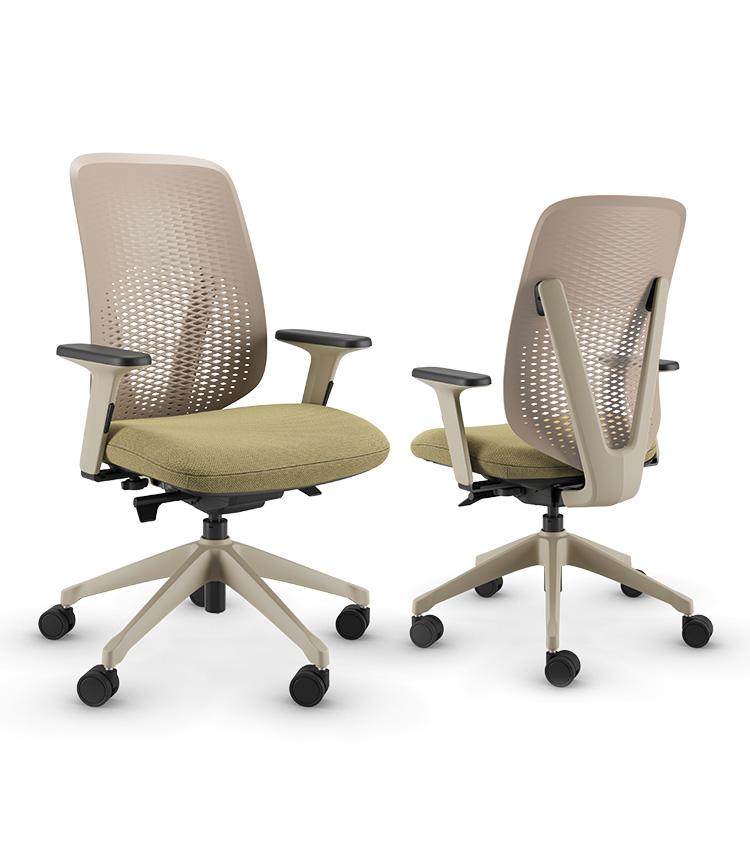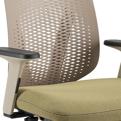 Syncron Auto Ajustável / Braço INC / Base UP 65 / Mocca - Lâmina Revestida e Assento Grid Bege Marfim 360