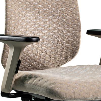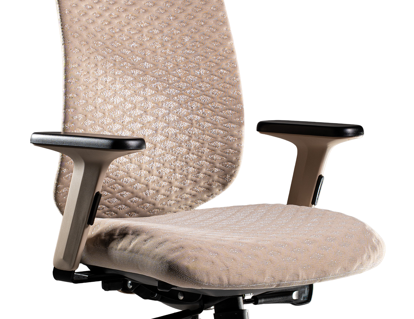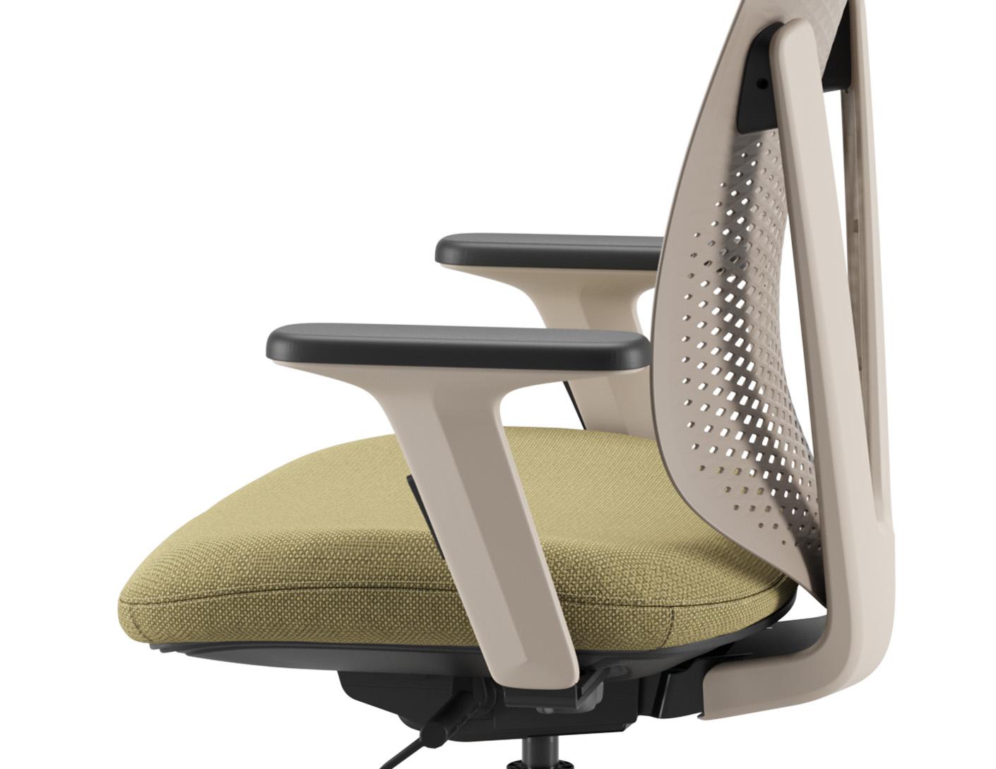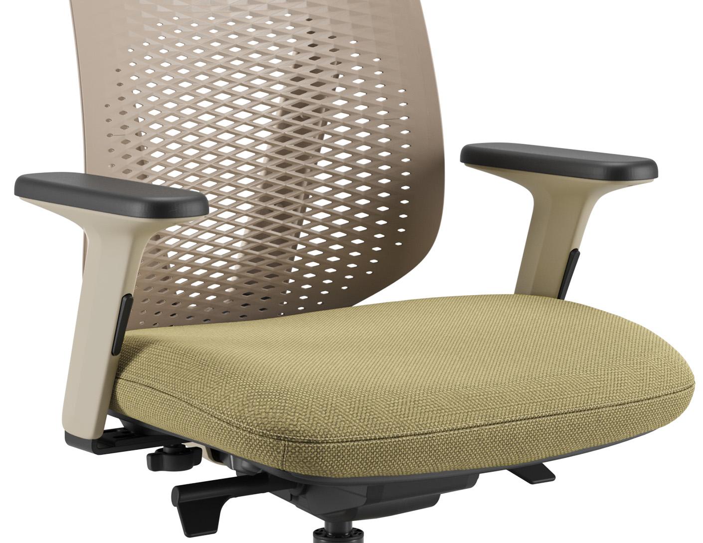 Syncron Auto Ajustável / Braço INC / Base UP 65 / Mocca - Lâmina Latte Macchiato 127 e Assento Grid Bege Marfim 360