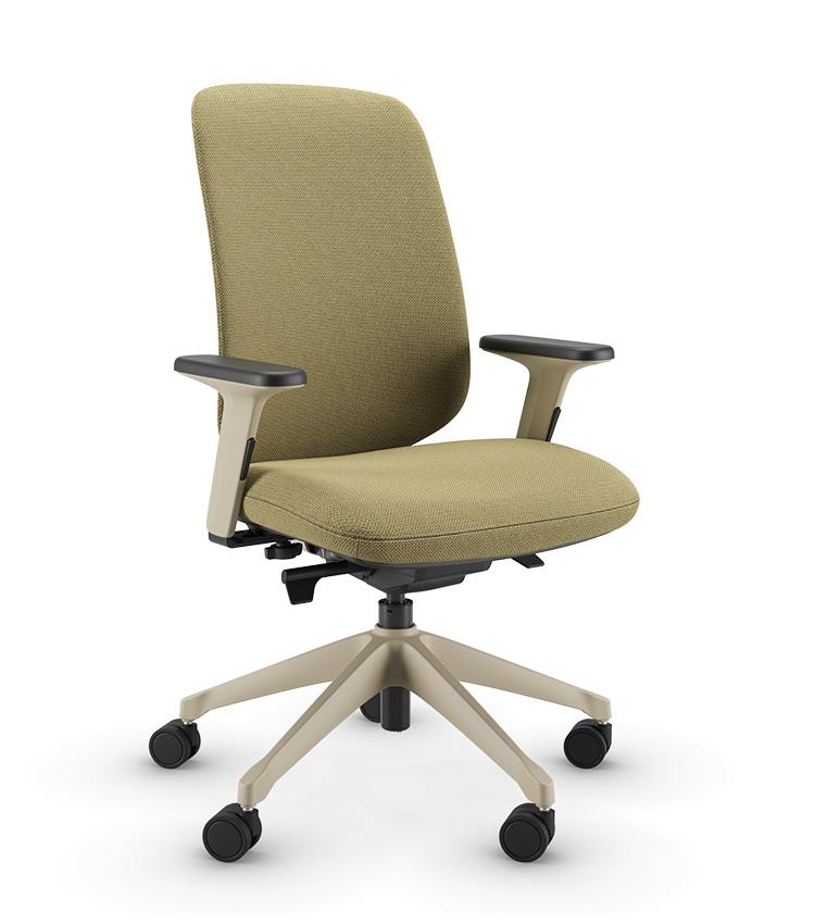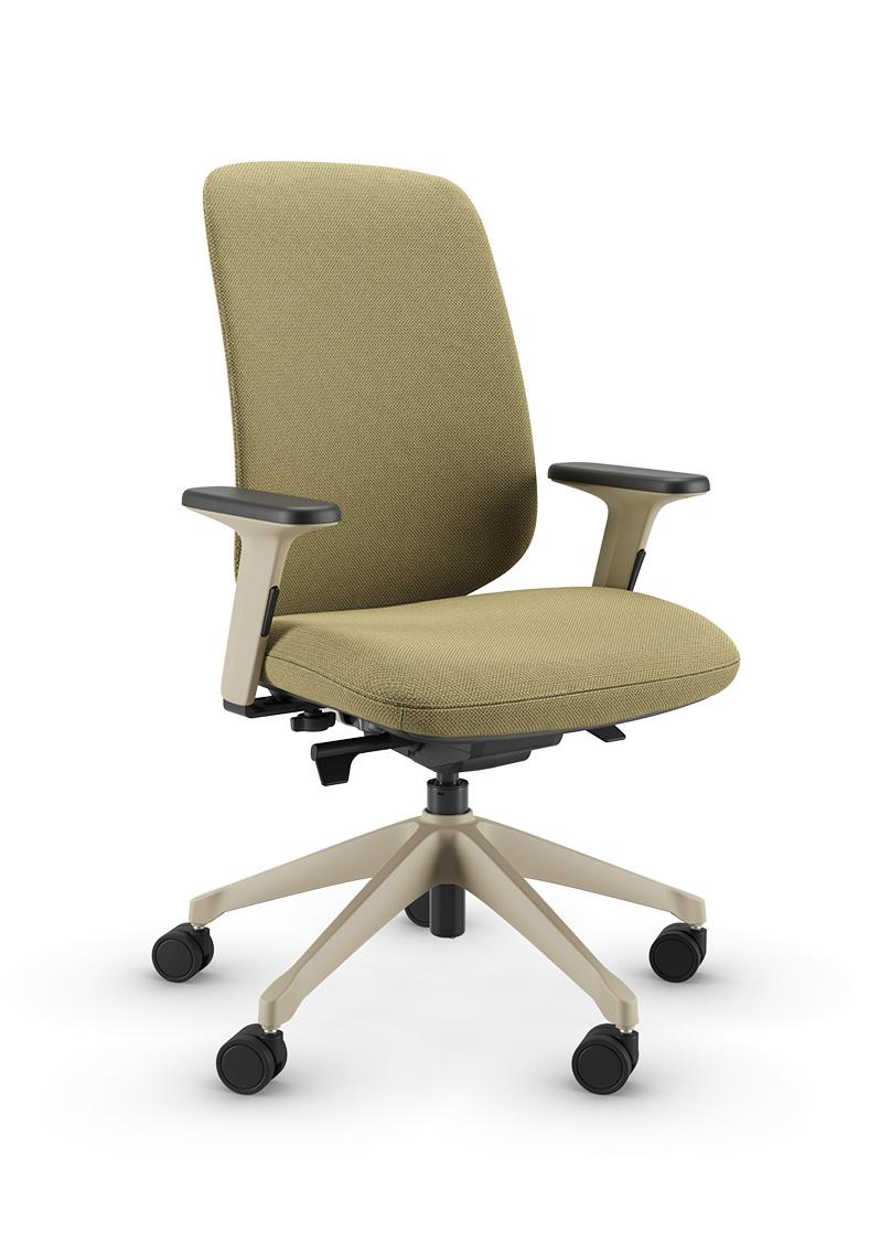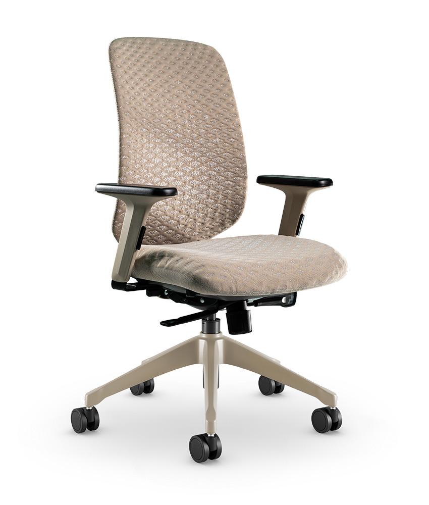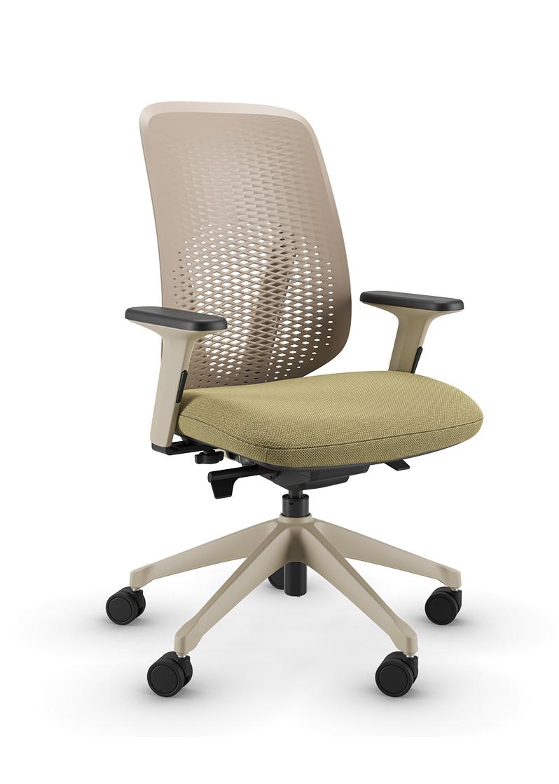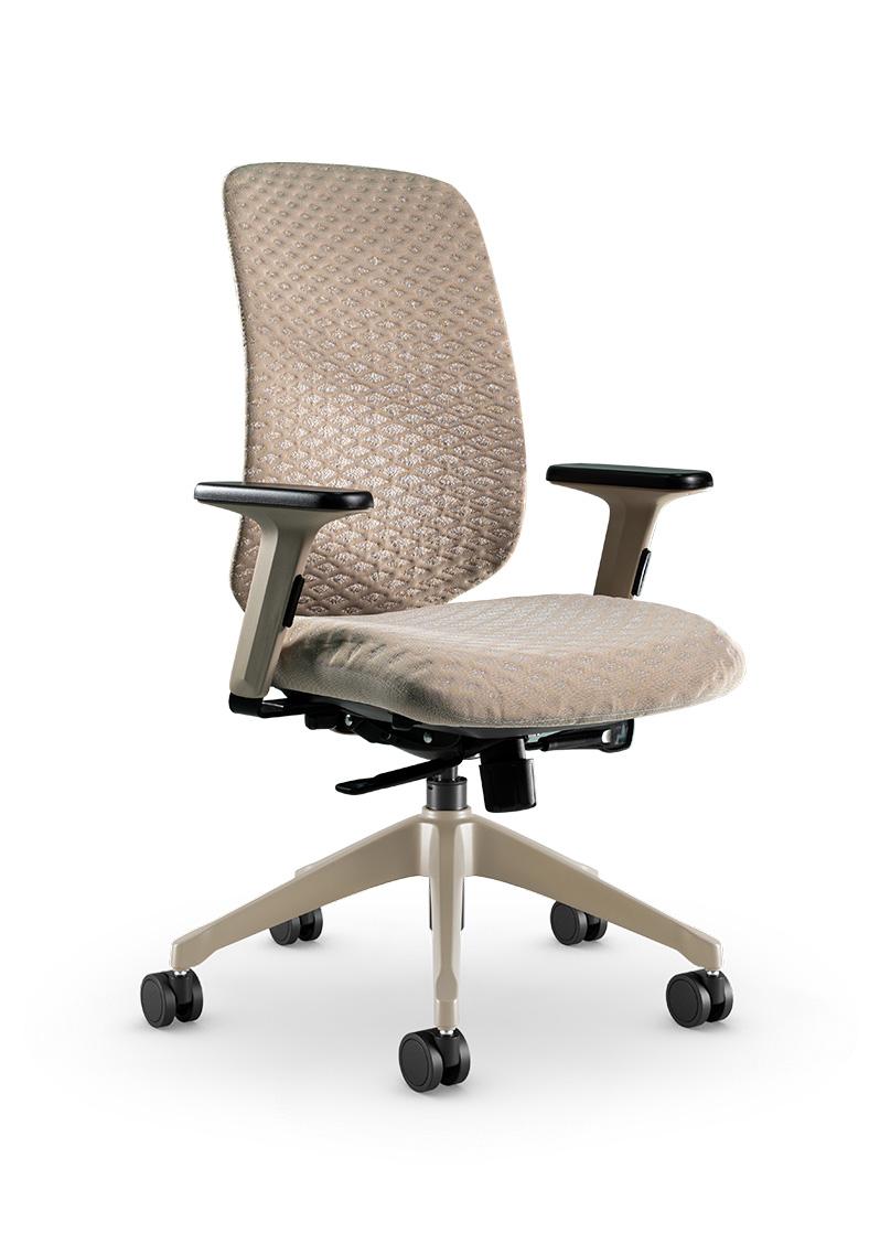 Syncron Auto Ajustável / Braço INC / Base UP 65 / Mocca - Lâmina Latte Macchiato 127 e Assento Grid Bege Marfim 360