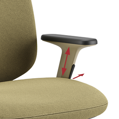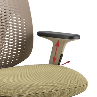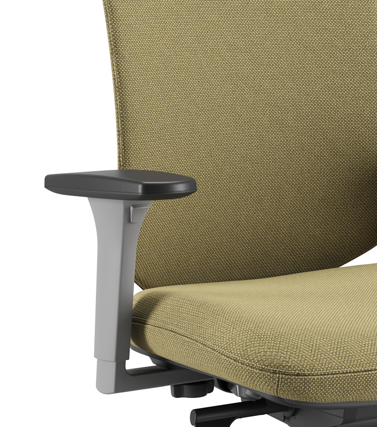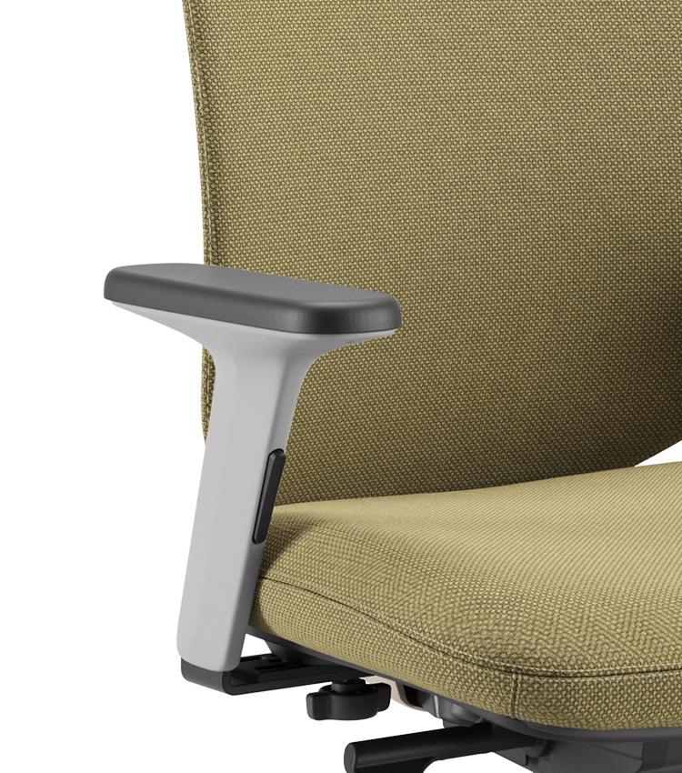 INC Preto, Cinza ou Mocca, com ajuste de altura e regulagem lateral por manípulo; e 4D-CA Preto e Cinza (lançamento exclusivo para a linha Artis), com ajuste de altura, regulagem lateral, profundidade e rotação. *A combinação do encosto, braço INC e base UP na cor Mocca resulta em uma configuração exclusiva.