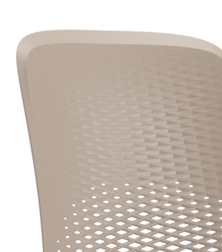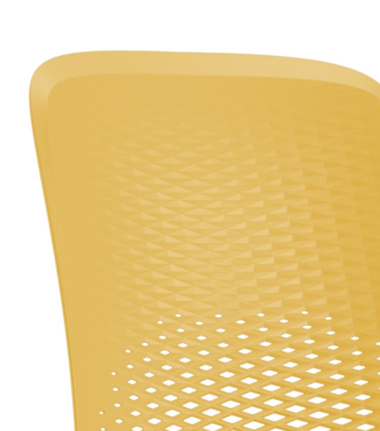Personalizar a Cavaletti Artis é uma expressão de estilo e identidade. O encosto, disponível em lâminas plásticas coloridas, tecido ou revestido Tramma, ganha ainda mais destaque quando combinado com a estrutura do encosto em uma tonalidade contrastante.
