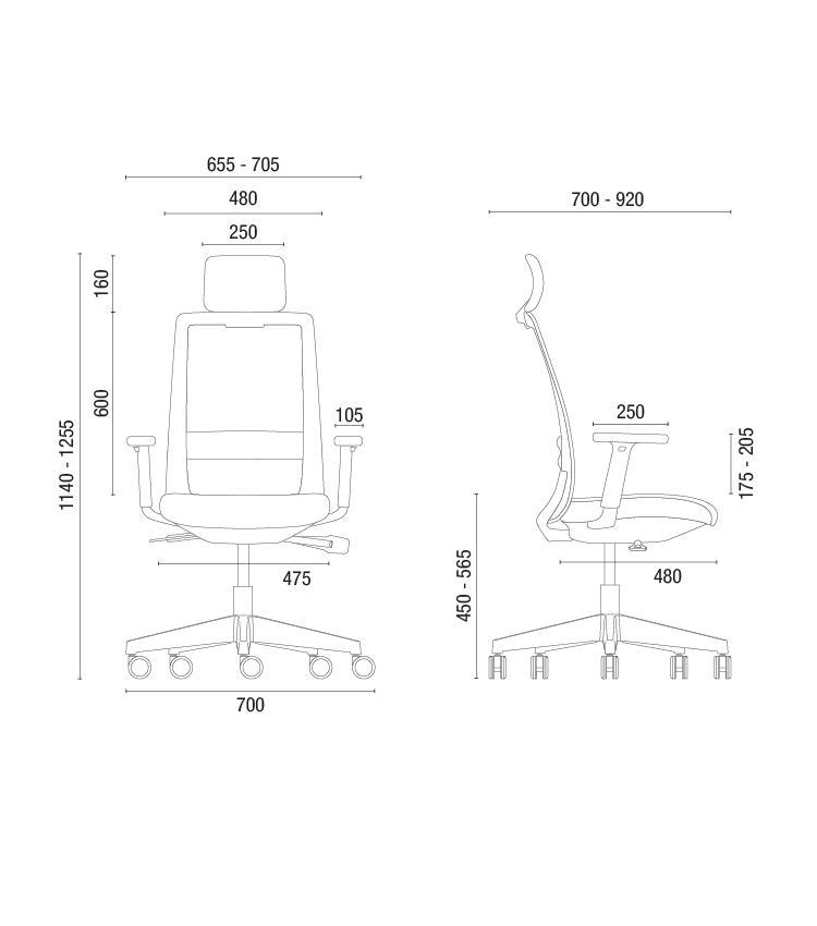 Assento em espuma injetada com Regulagem de Profundidade e Regulagem de Altura à Gás. Revestimentos em Poliéster, Grid, Haven, CEC - Stilo, Space, Vinil e Couro Natural.