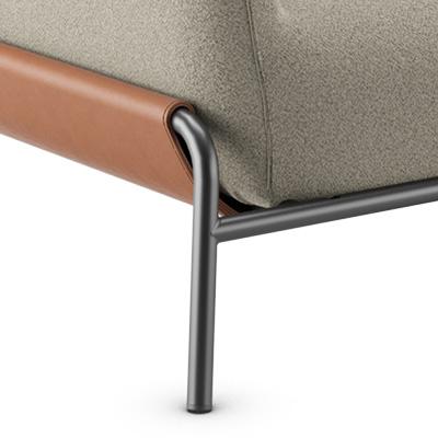 A estrutura metálica garante estabilidade e leveza visual. Seu desenho reforça a contemporaneidade da Domos, equilibrando solidez e elegância.
