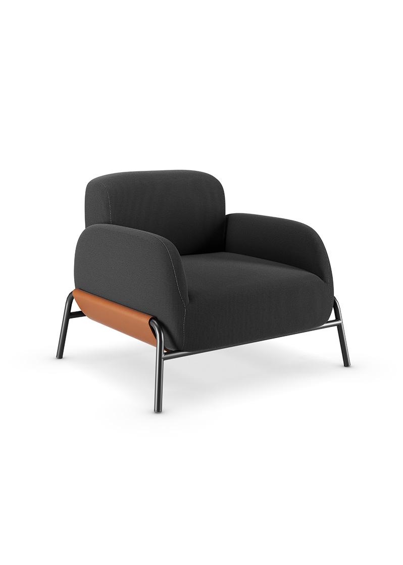 26.110 - Poltrona - Base 4 pés com ponteiras / Em Strati Chumbo Ígnea 384 e estrutura Preto Universal 101