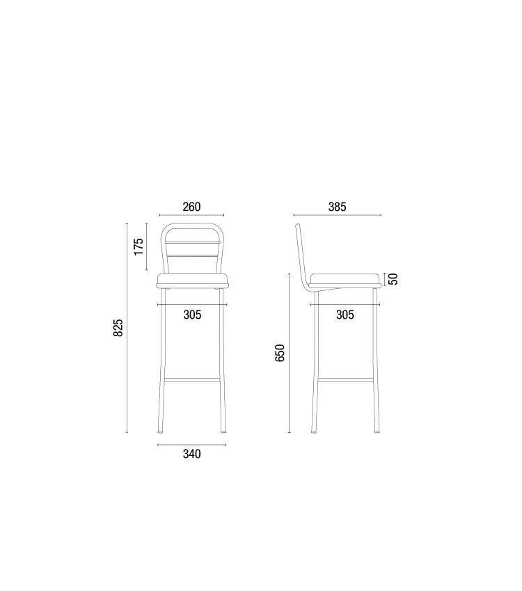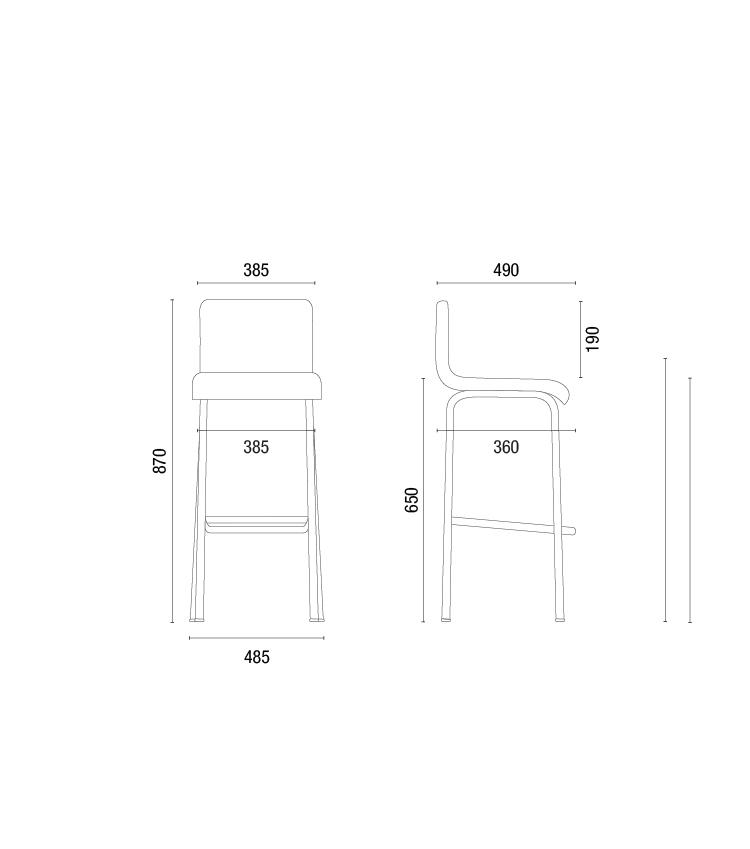 650mm / Assento em madeira envernizada e estrutura Telha 84