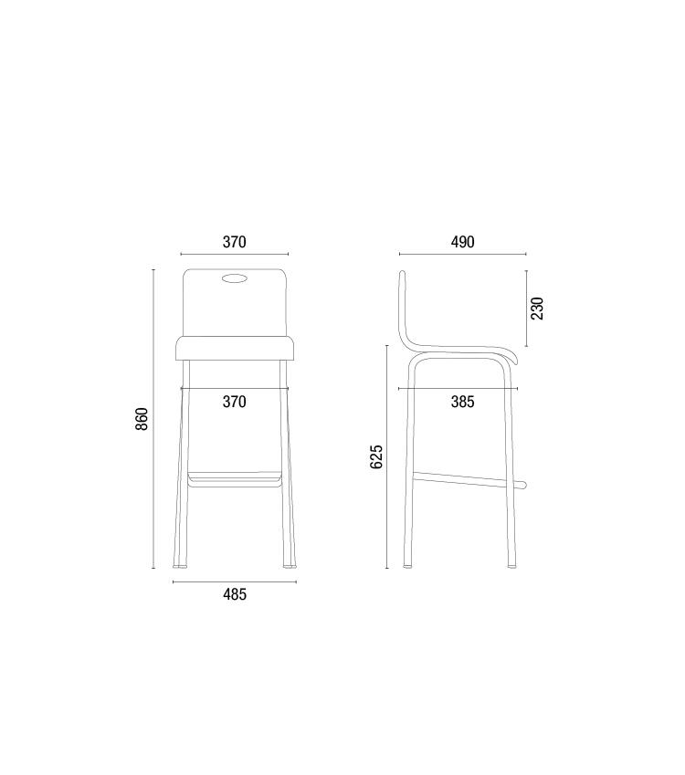 Banquetas modelos 14015 e 14016 possuem a versão com encosto em tubo de aço.