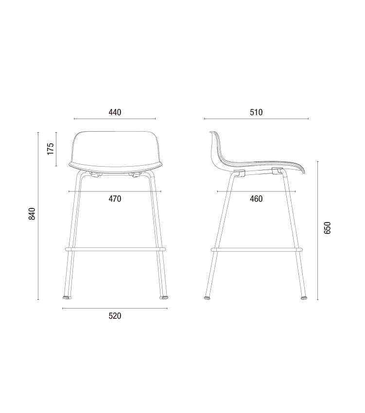 46.025 - Banqueta Palito - 650mm / Concha Plástica / Estrutura alta Pé Palito