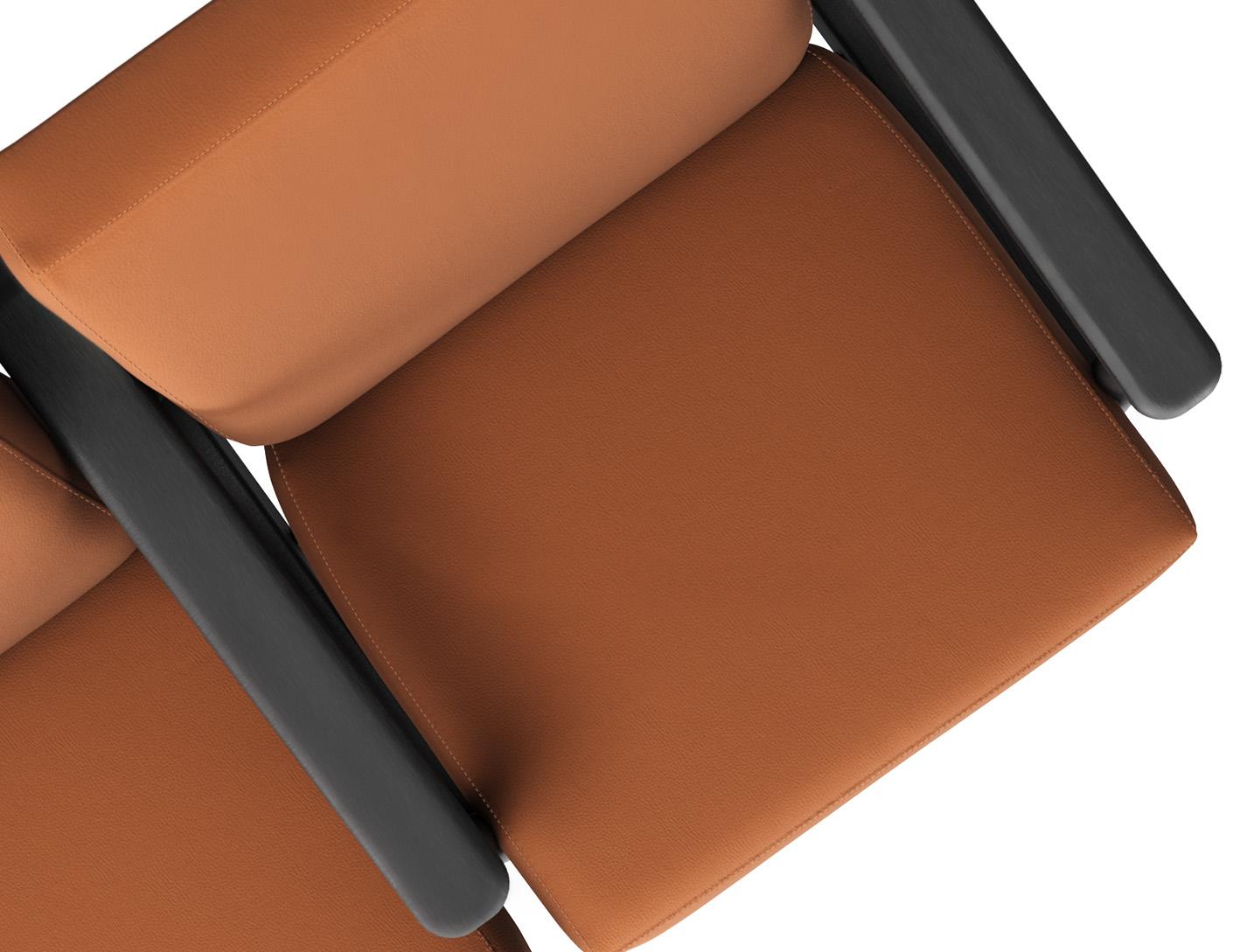 Encosto com estrutura reforçada em madeira e aço, aliado a camadas de espuma em diferentes densidades que garantem resistência, conforto e ergonomia.